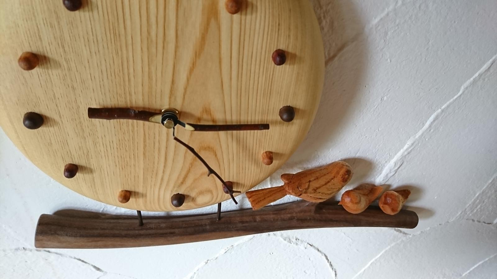木の枝に泊まったかわいい小鳥たちと満月の時計です。